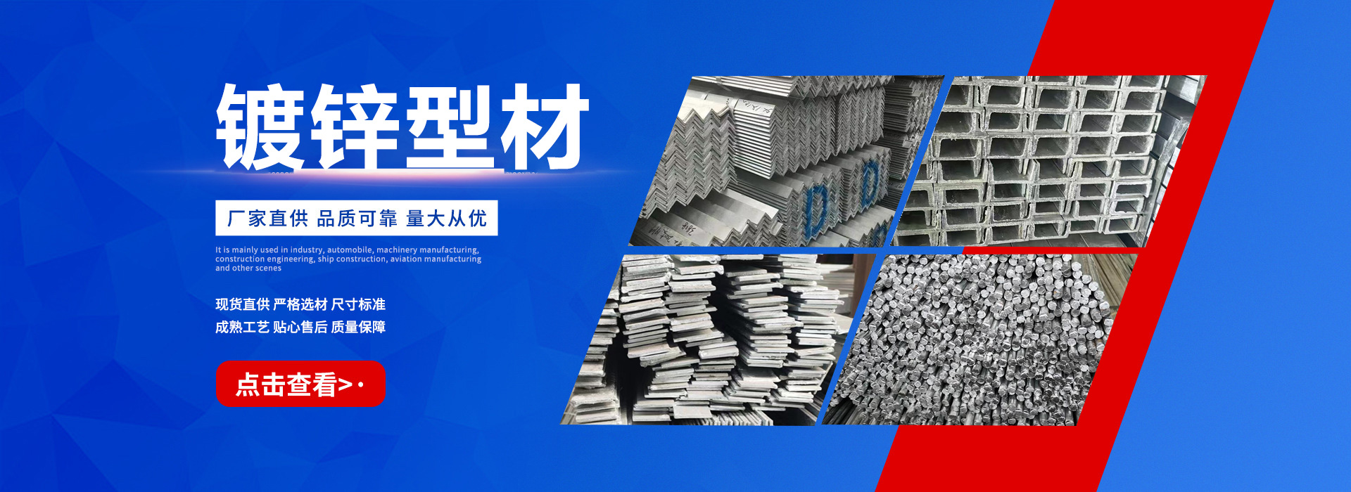 天津恒泰廣業(yè)鋼鐵有限公司是一家從事鋼鐵流通企業(yè)。本公司經(jīng)過多年的努力已在華東、華北、華南地區(qū)建立起良好的信譽(yù),不僅在同行市場營銷上取得成績,而且將直銷作為公司主要銷售模式,為直接用戶提供優(yōu)惠價(jià)格、合格品質(zhì)的鋼材資源,直接降低了廣大用戶的采購成本,贏的廣大鋼材采購商的信任。 天津恒泰廣業(yè)鋼鐵有限公司主營大棚管,鍍鋅管,鍍鋅方矩管,鍍鋅帶圓管,鍍鋅帶方矩管,鍍鋅H型鋼,鍍鋅角鋼,鍍鋅槽鋼,鍍鋅扁鋼,鍍鋅圓鋼等.供應(yīng)溫室大棚,幕墻公司,公路設(shè)施,鋼構(gòu)工程用材, 產(chǎn)品規(guī)格范圍: 鍍鋅鋼管4分-10寸,鍍鋅方管:20*20—800*800,選擇天津恒…